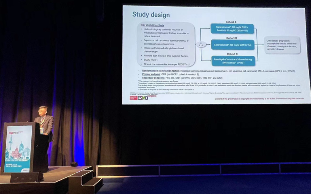 有望为宫颈癌患者带来治疗新选择10月22日,尊龙凯时官网医药创新药卡瑞利珠单抗联合法米替尼对比卡瑞利珠单抗单药或研究者选择的化疗治疗复发转移性宫颈癌随机、开放、对照、多中心的Ⅱ期临床研究(SHR-1210-Ⅱ-217) 亮相2023 ESMO大会简短口头报告现场3。该研究由复旦大学附属肿瘤医院吴小华教授团队开展,吴小华教授在现场公布了该重磅研究进展。研究结果显示,在既往以铂为基础化疗失败后复发或转移性宫颈癌患者中,与单独使用卡瑞利珠单抗或研究者选择的化疗相比,卡瑞利珠单抗联合法米替尼显著提高了抗肿瘤活性,安全性可控,有望为晚期宫颈癌患者提供新的治疗选择。